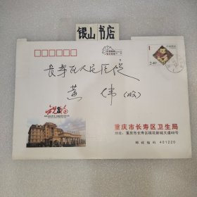 实寄封: 2008年.重庆市长寿区卫生局→长寿区人民医院.2009年2.4元邮资信封