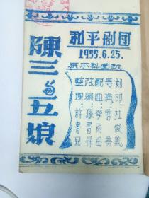 1955年《华东地方戏曲丛刊第十九集:陈三、五娘(梨园戏)》蔡尤本、许志仁 口述,许书纪、林任生、张昌汉 整理,华东戏曲研究院 编辑,新文艺出版社 出版,印2150册,上海文化出版社藏书