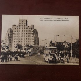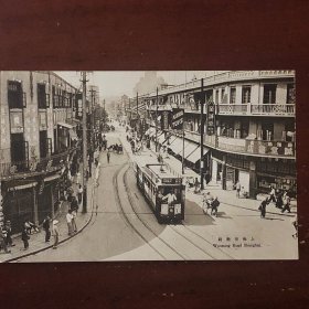 (影像资料)民国上海风光建筑明信片_ 上海上海吴淞路一带繁华街景 有轨电车 商铺林立 天一酒楼 长泽写真馆照相馆 志诚堂书店等等 远处为百老汇大厦 品好如图 十分清晰
