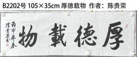 B2202号 105×35cm 厚德载物 作者:陈贵荣 1935年生 浙江绍兴 东浦人 现为中国文化艺术发展促进会会员 中国老年书画研究会会员 中国老年书画学会会员 环球翰墨文化艺术院研究员