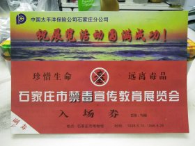 1998年石家庄市禁毒宣传教育展览会入场券门票