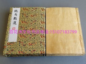 〔百花洲文化书店〕历代绝句类选评注:雕版木刻本。雁皮纸薄叶刷,线装1函2厚册21卷全。文久二年(1862年)楷书上版,前贤有多色标注。按唐宋元明清五代诗人之名句,分类别及优劣四个等级列选。此书亦有普通皮纸本12册者。备注:买家必看最后一张图“详细描述”!