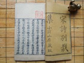 清道光精写刻《宋诗别裁集》原装8册八卷全。版本小巧精致,乃掌上摩挲赏玩之物。中国宋诗总集,包括了西昆体、江西诗派、江湖派。意在“尝鼎一脔,窥豹一斑”,以见宋诗宗派。实乃中华诗歌明珠。书品奇巧,宋诗百家随身可读。