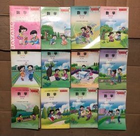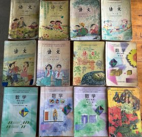 苏教版九年义务教育六年制小学课本语文第一、二、四、五、八、十二册,五年制小学语文教科书第四、七册,小学数学第四、六、九、十二册、共12册合售