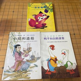 九年义务教育六年制小学语文自读课本3本合售鸭子和白鹅请客、小郑和造船、一串紫葡萄