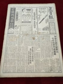民国三十六年十一月正言报1947年11月4日榆林郑州豫皖苏鲁陈雪屏东北王德傅桂永清长江金山扬州南通绍兴当塗蚌埠吴尚鹰张知本大连江南大学西北上海光复三十六周年杨宝森梅艳芳