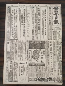 民国三十七年七月世界日报1948年7月22日华北天津松林店高碑店徐水保定何应钦孙科武清太原汾河徐永昌周鸿经长江朱绍良张群中原广州张子奇高耀煌李国堂陈雪屏敦煌香山东北武汉