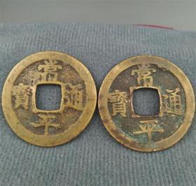 常平通宝折二大样2个直径31毫米+背字赈二月中国流通朝鲜古钱币
