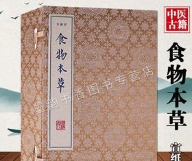 食物本草(宣纸线装一函四册)明佚名编绘彩绘版画影印本原著原文本草纲目中国古典经典名著医药文献资料古籍收藏广陵出版社广陵书社