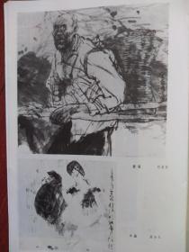 美术插页(单张)刘进安国画三幅《老农》《大娘》,梁培龙国画《小品》