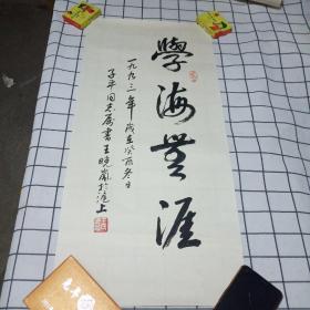 邵岩 邵岩书法 中国国家画院研究员、“射墨大师”著名书法家邵岩书法小硬卡 学海无涯 邵岩 邵岩 永久保真迹 全新无污渍有折痕无破损无残缺品相如图 纵33厘米横13厘米硬卡