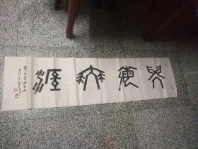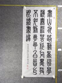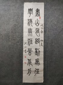 B15521号书法篆书 朱熹 劝学诗 110×52cm 作者:张锦贤 书法学报首届全国书画小品大赛获奖 第四届全国中老年书画大赛获奖 书山有路勤为径,学海无涯苦作舟。黑发不知勤学早,白首方悔读书迟。