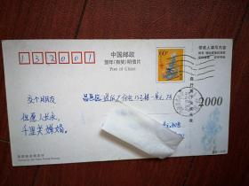 实寄60分贺年有奖邮资明信片,2000年12月21日,22日吉林市本地(吉化住宅哈密站至昌邑区造纸厂住宅),机戳,双戳清晰,HP2000(12-9)龙年恭贺新春