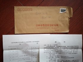 实寄封(内附信两封,吉林市英语创新教改展示会通知,吉林市教科研所公函封),吉林市至吉化七小,2001年12月4日机戳,7日投递戳。双戳完整清晰。贴普29长城60分邮票。