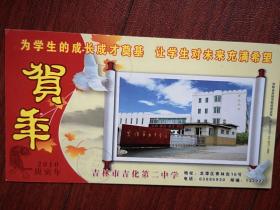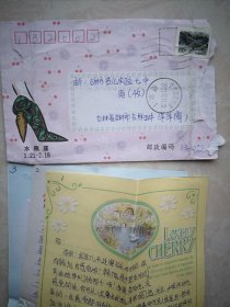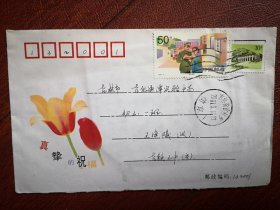 实寄封(内附信一封,未拆封)贴1998一4(6一3)T警察50分票,普29长城10分票,2001年3月14日吉铁三中至吉化通潭实验中学,邮戳清晰,美术信封真挚的祝福