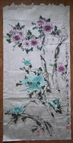 手绘真迹国画:马玉萍花鸟画《志士菊花有余香》