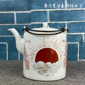 下乡收回六十年代提梁茶壶(东方红 太阳升)手绘图案,保存完好,全品无瑕疵,尺寸如图,个人收藏摆放佳品……