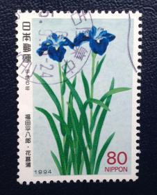 日邮·日本邮票信销:樱花目录编号C1445 1994年集邮周切手趣味周 福田平八郎画--花菖蒲 1全