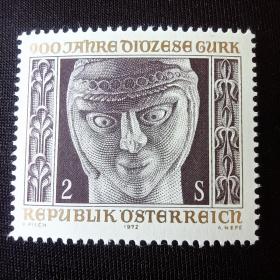 A4奥地利邮票1972年 卡林西亚主教教区900周年 邮票图案:克恩滕杜尔克大教堂地宫中的人物雕塑 雕刻版 新 1全