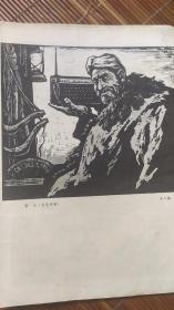 文革美术插页(单张),李习勤套色木刻《喜讯》,赵光涛国画《侦察兵的语言》