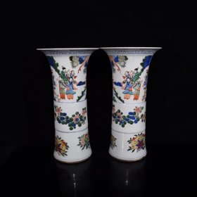 清康熙古彩人物故事花鼓41×22,价格1800一对