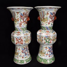明宣德青花斗彩龙凤呈祥纹花鼓51×23,¥4500一对
