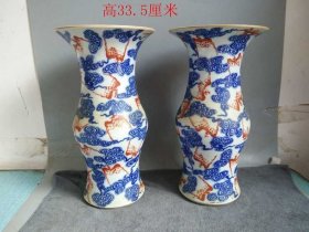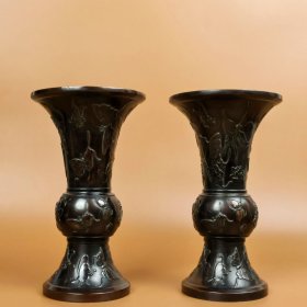 紫铜浮雕花鼓,高24.8厘米,口径14.2厘米,重6195克,一对¥5200
