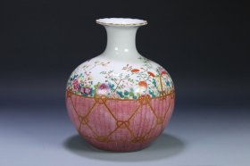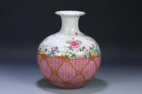 清 粉彩花卉石榴尊。带拍卖图录、 款识:“大清雍正年制”款, 尺寸:高23*20cm