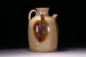 明,褐釉贴花双系执壶,带拍卖图录 品相好,尺寸:高20cm