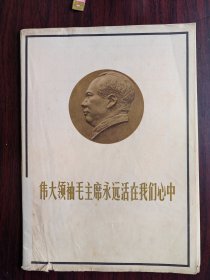 毛泽东逝世专号—伟大领袖毛主席永远活在我们心中(上海美术特刊)。内有毛主席各个时期六十三幅图片和江青和华国锋和宋庆龄和张春桥和叶剑英和王洪文等人图片。