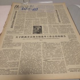 八十年老报纸陕西日报法国举行世界女子体操赛邹小红吴文莉各获一项冠军,郭跃华获世界乒乓球精英大赛冠军 山东棉花研究鲁棉1号照片西安市北大街青年稠酒店纪实,陕西省县级选举工作报告,陕西省高等院校开展五讲四美活动,西安市灞桥区开展五讲四美王忠献照片,凤翔县指导五讲四美活动,铜川市李家塔煤矿周建发魏桂花照片