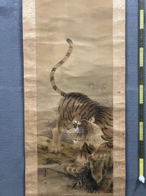 吉田春岭,清末民国时期《虎啸图》国画书法古玩字画。绢本绫裱画心尺寸124*41编号825050212。