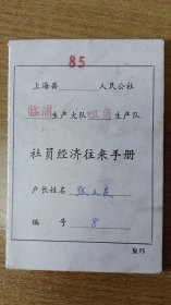 1985年证件收藏:上海县临浦生产大队咀角生产队社员经济往来手册(户长张卫良)【内有社员预支记录】