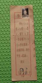 1962年山东省郯城县第一中学毕业证存根/有照片/程永昌/男18岁郯城县人生于1944年