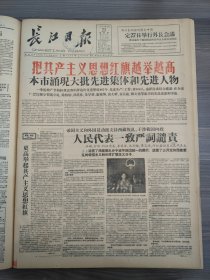长江日报1959年4月23日把共产主义思想红旗越举越高安禅额尔德尼在全国人民代表大会上发言班禅阿沛阿旺晋美李济深沈钧儒黄炎培阿旺嘉错肉联厂武汉电石厂武昌电厂武汉第一米厂班禅额尔德尼在第二次全国人民代表大会第一次会议上的发言,喇嘛的声明,光荣榜,先进集体单位,先进生产工作者马学礼徐伯勋胡延栋朱早弟康家坤由文祥黄乐庭韩文第陈若昕张选文李忠富鄒秀珍龙蓉芳高盛麟高欣荣易锺英罗华啓周春姣马天佑姚干