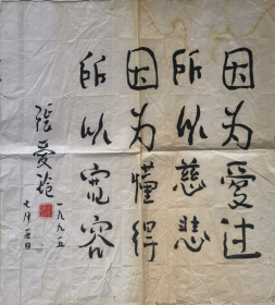 精美书法《因为爱过,所以慈悲;因为懂得,所以宽容》张爱玲书法一幅 尺寸:53*48.5cm(有破损 见图)