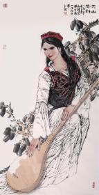 美术画家 李鼎成 水墨画一幅 天山少女