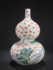 清乾隆 粉彩“洪福齐天”山水图葫芦瓶。