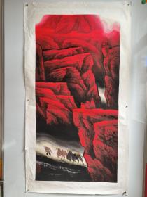 师承中国著名画家周绍华,中国梦无笔泼墨画派创始人,中国当代著名书画家、诗人,艺术鉴赏师,美术评论家、收藏家。【周悦 山水画作品“天山红”一幅8平尺】托片!保真出售!