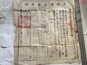 1949年10月1日开国大典建国当天,山西省高平县,当时属于华北区, 土地房产所有证一张,中华民国改加盖“公历”,印章是“高平县人民政府之印”
