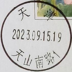 实寄片 盖销 天津-天山南路1 2023.09.15 日戳