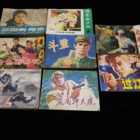 80年代连环画一组。祖国啊,母亲。将军出少林。金色的葵花。斗鲨。大雁山。风云岛。夜闯冲天礁。过江龙(八本合售)