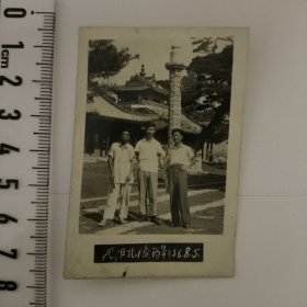 黑白照片:男女北陵公园门前合影