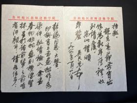 吴昌硕嫡裔曾孙、西泠印社社员、著名书画家吴民先先生毛笔信札一通两页(上款扬州学者彭海老师)