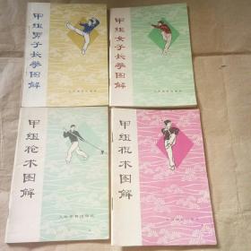 甲组棍术图解,甲组刀术图解,甲组剑术图解初级剑术,初级刀术,初级棍术,初级长拳。甲组剑术图解,五禽戏,少林武术,长拳对练单刀对枪,乙组长拳图解,飞龙长拳。共13本合售