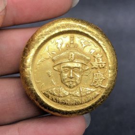 老书店到期库存精品不知道什么材质做成的分量感十足古钱币收藏次鎏金清代皇帝金锭嘉庆金锭金饼背单龙金锭特价