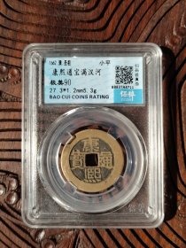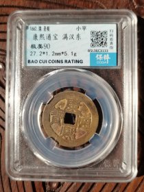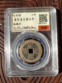 这枚康熙通宝满汉浙(保粹极美90分),品相优异,市场参考价约200 - 300元。其版别特征突出,铜质精良,评级认证为收藏提供保障,是康熙满汉文系列中颇具吸引力的品种,市场交易活跃,适合各类藏家收藏。