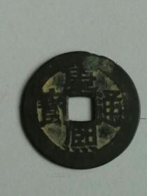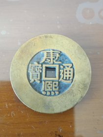 清代传世品古钱币收藏-【康熙通宝】背满汉文:宝“同”局(大同府铸钱局)诗文记地铜钱“同福临东江”,之“同”字,币重3.6克、直径:28毫米,正背如图。