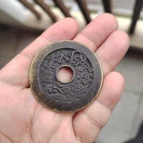 清代传世黄亮文星高照宽边花钱铜钱古钱币一枚,品相如图,直径44.8-44.9mm,字体线条都比较不错,唯穿口有几条牛毛裂纹,但声音还可以