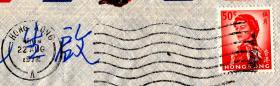 [S1-05]香港《中外画报》社社长、古钱币收藏家、广东茂名人苏锡文1973.09.28寄台湾嘉义市高碧山航空挂号信函(《中外画报》稿纸18.3X26.4厘米4页另附1页请代恳黄燕良兄费神物色之铜币20品)连封/贴无齿不干胶女王像邮票壹圆+壹圆邮票双连X2销09.28邮戳/请教若干问题…/因附寄泉品经海关验讫放行…,背销台湾嘉义10.01到达邮戳欠清。